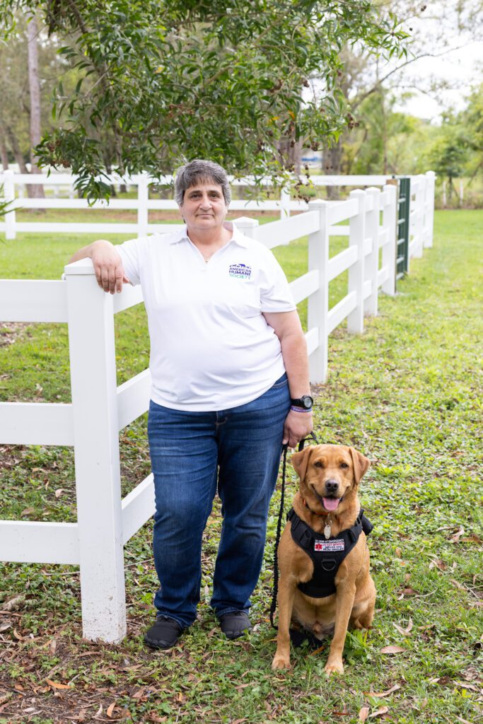 Rose served in the U.S. Army for 20 years including two deployments to Iraq. She lives in Florida and was paired with Tiny Tim, a male Labrador Retriever.