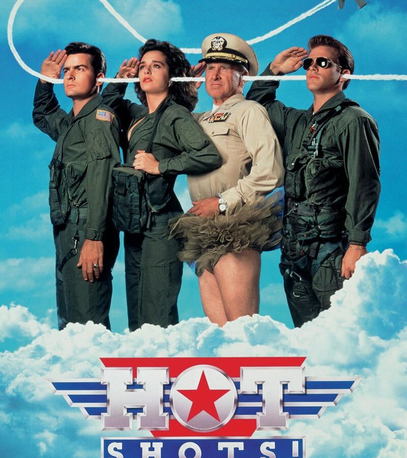 Hot Shots is a military spoof that parodies films from Gone With The Wind to Top Gun. Air Force Lieutenant Colonel Topper Harley is selected to fly in an elite fighter corps on a dangerous secret mission. He joins the corps after sitting out a suspension on an Indian reservation that is more than a little reminiscent of the one in Dances With Wolves. Other members of the corps are Kent, a self-obsessed pilot in competition with Harley for some of the glory and for a beautiful psychiatrist, Ramada. There’s Dead Meat, a family man, and Wash-Out, a pilot with a slight disability…he’s nearly blind. Their “cracker-jack” unit is headed by an addled admiral with a perfect record in the skies…went up 194 times, was shot down 194 times. This Naval air corps team, which more closely resembles the Keystone Cops, involve themselves in a variety of adventures, from ace flying to kinky sex.